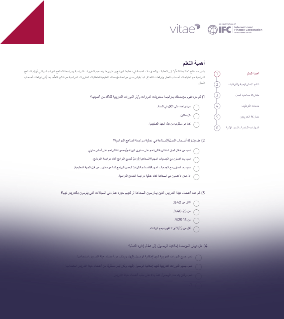 وقد تحقق فريقنا بدقة من المعايير مع الكليات والكليات التجارية في جميع أنحاء العالم. ونتيجة لذلك، اكتسب عملائنا رؤى الجودة والتوجيه الاستراتيجي لإنتاج المزيد من الخريجين للتوظيف. لقد اكتشفنا أن الاتجاهات العالمية تتخلف عن أفضل الممارسات في جميع الأبعاد الخمسة. لهذا السبب ، تقدم Vitae العديد من الموارد المجانية بما في ذلك ، و ، ومساعدة المؤسسات في التطوير الاستراتيجي.